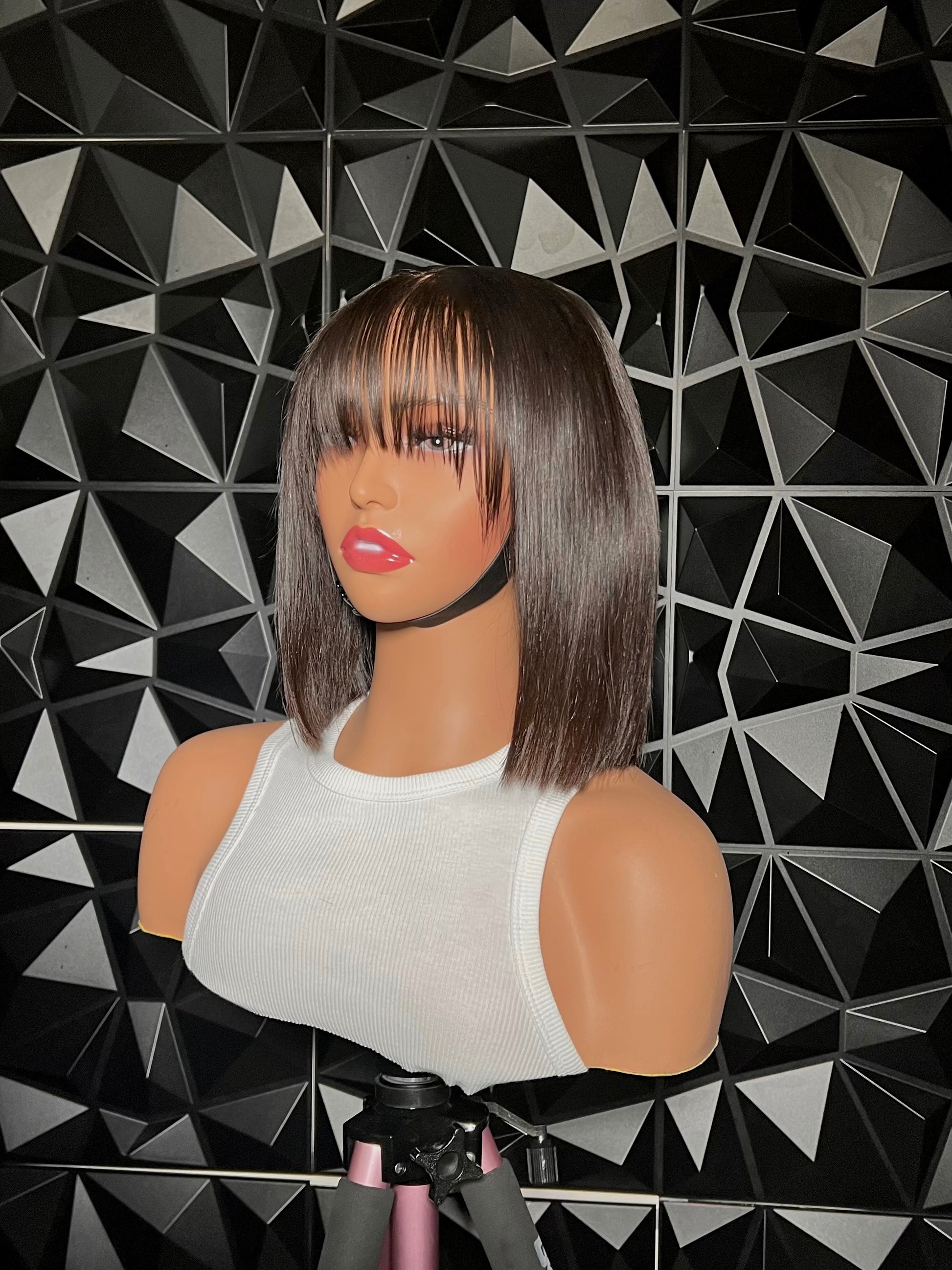 Nikki is a custom 12" 180% density wig constructed with a 4x4 Lace Closure and our Vietnamese Bundles. She will come styled bone straight w/ a bang